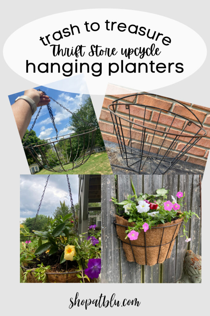 The sticker shock of a garden hanging planter at the local nurseries is real! I’ve seen some, though absolutely stunning, for $99…at Home Depot. If I had that kind of disposable income to use for a garden hanging planter, I would be very happy. But, I’m still not sure I would take the chance knowing that there a possibility that the plants wouldn’t make it through the extreme Alabama summer. So when I saw these standard wire hanging basket forms at the thrift store for just $1 apiece, well…that’s a gamble I can take. Let’s DIY our garden hanging planter!