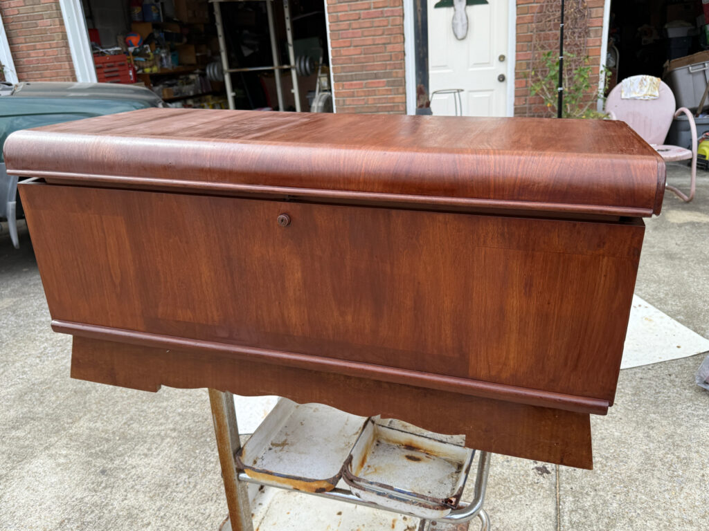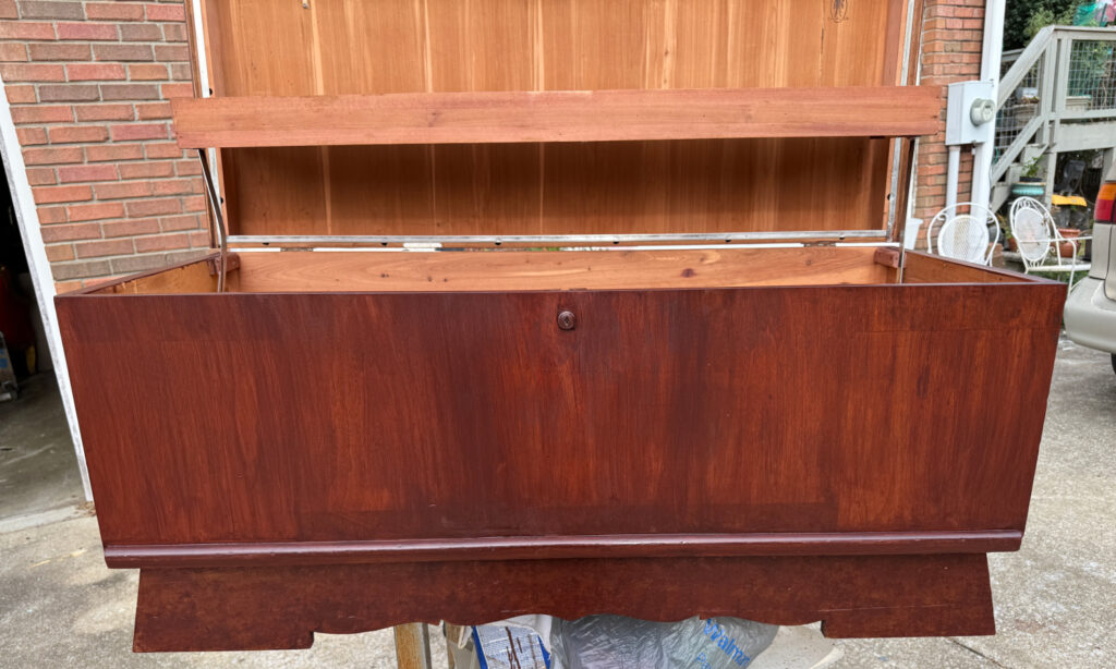 You know I am passionate about antiques. But that passion doesn’t hold a candle to my passion for cherished family heirlooms. It’s no secret that I like stuff. Couple antiques with family mementos and my heart explodes! So, when my work pal, Andrea, told me that her sister wanted to restore their mother’s cedar hope chest, my heart skipped a beat.