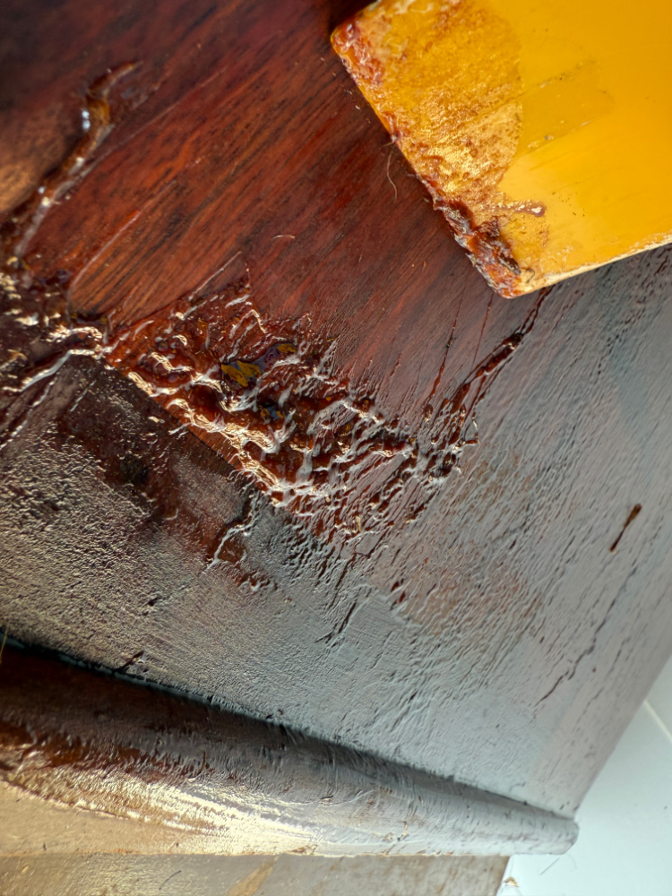 Apply some more stripper. And wait. Make sure you keep the surface loaded with stripper. Don’t let it dry out.