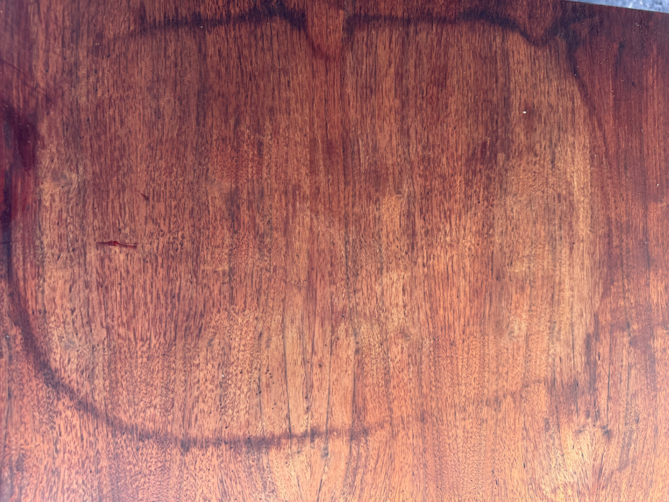 This piece had a very pronounced stain on the top of the cedar chest. There isn’t really any way to know how long the stain was in the wood. This particular mark was concerning because it was deep into the wood. I researched how to remove a stain. Again, I had to be very careful because the top of this chest is comprised of wood veneer.