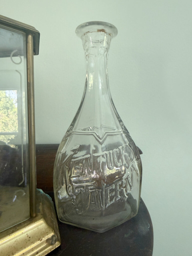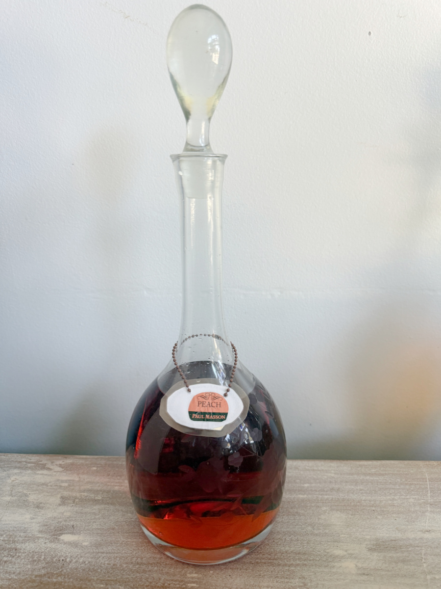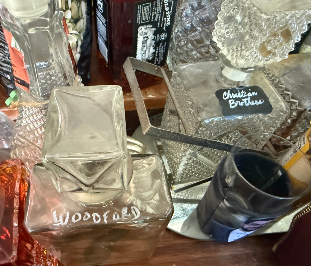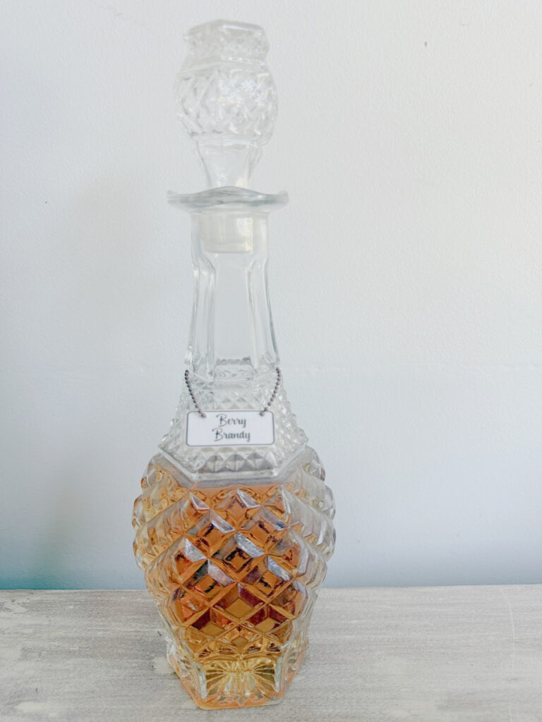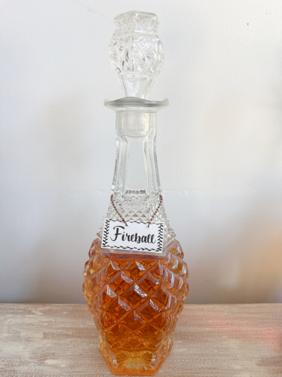 I used a decanter that belonged to my Mom. I remember this being in our dining room but always empty. I think it is from the 1970’s.