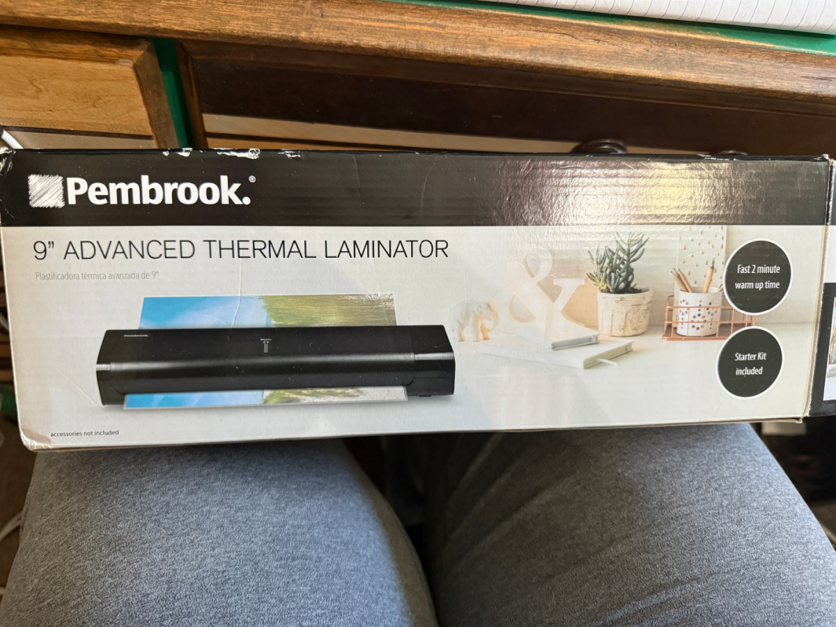I bought this little laminator back when I had my store. I think I have used it once. It has a variety of laminating sheets to choose from…normal page size, 5X7 for photos, and a wallet size too.