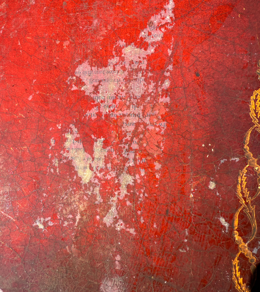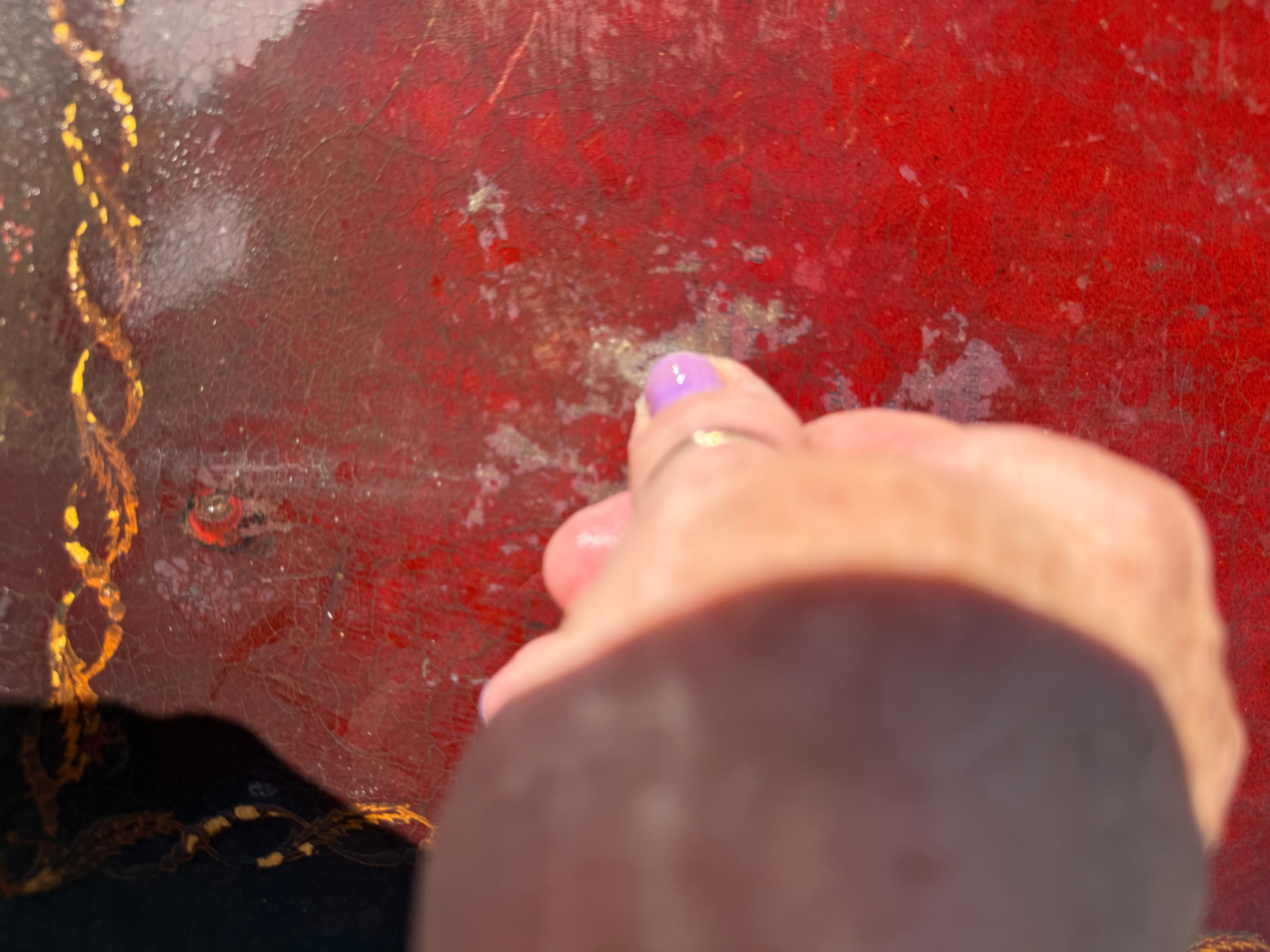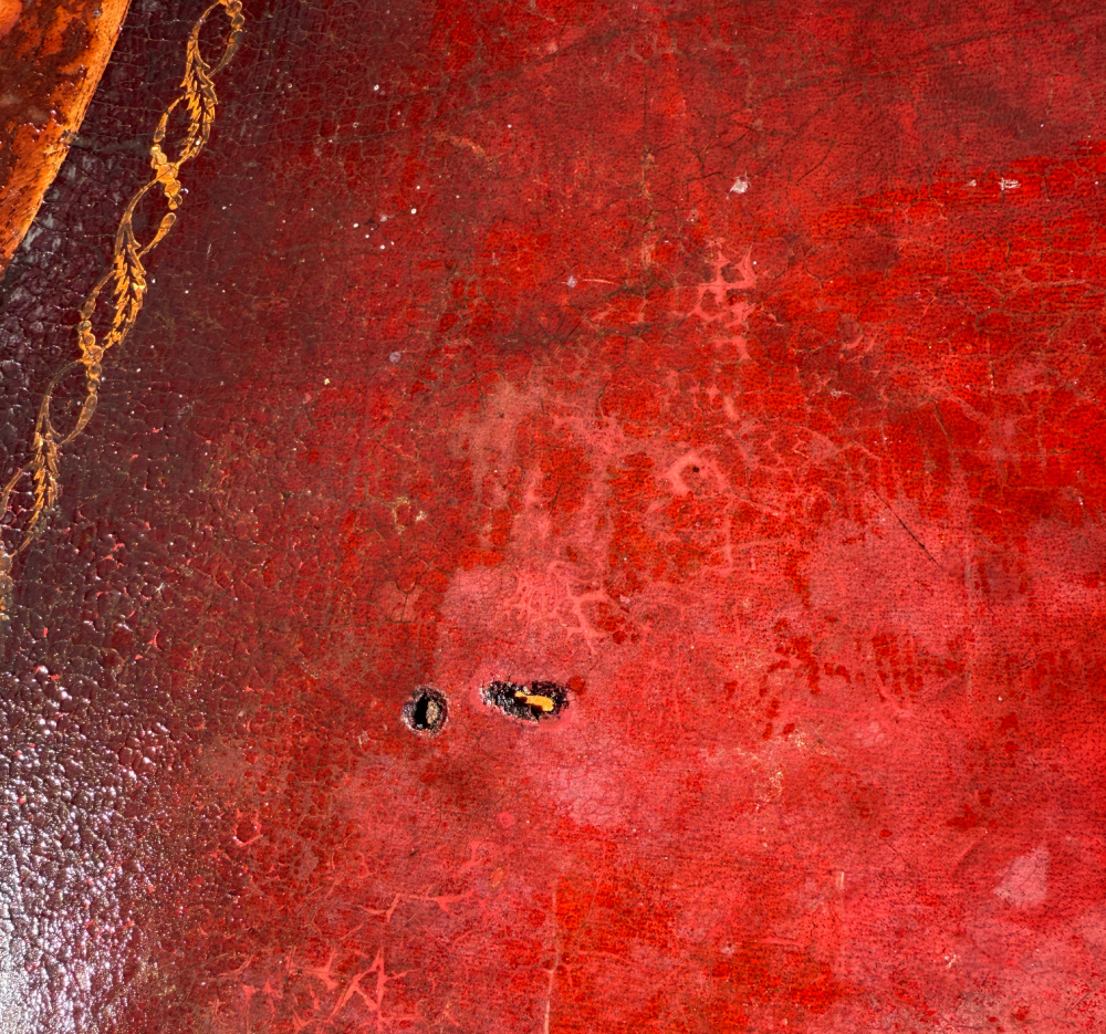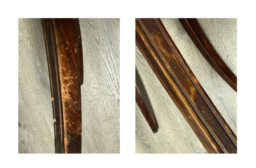 Normal scrapes and dings and scratches covered this piece. There was not a single spot that didn’t look worn.