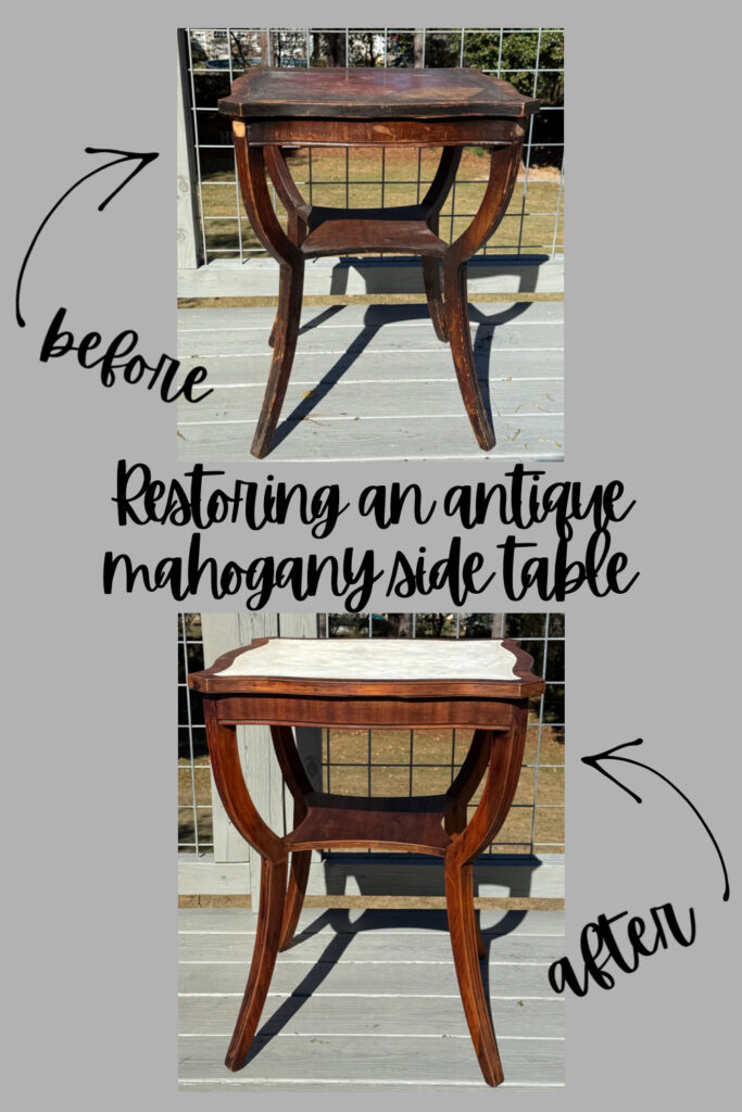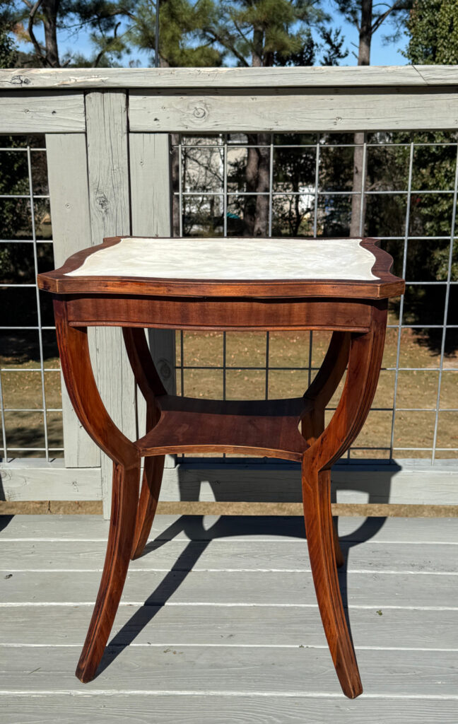 Hello! I’m Suzanne. I owned an antique store, The Blue Building Antiques and Consignment, for 10 years, here in Alabama near Birmingham. We closed it in 2019. I have loved creating for as long as I can remember. I’m an only child and my oldest memories are of puttering beside my dad in his workshop in our Philadelphia home. I’m back to work full time now for a regional bank but I still dabble with this blog every chance I get. My passion is for furniture but really any kind of painting gets me going. I love a good challenge and transforming old items into beautiful focal points is one of my favorite things to do. Enough about me, let’s get on with today’s project – the upcycle of this antique mahogany side table.