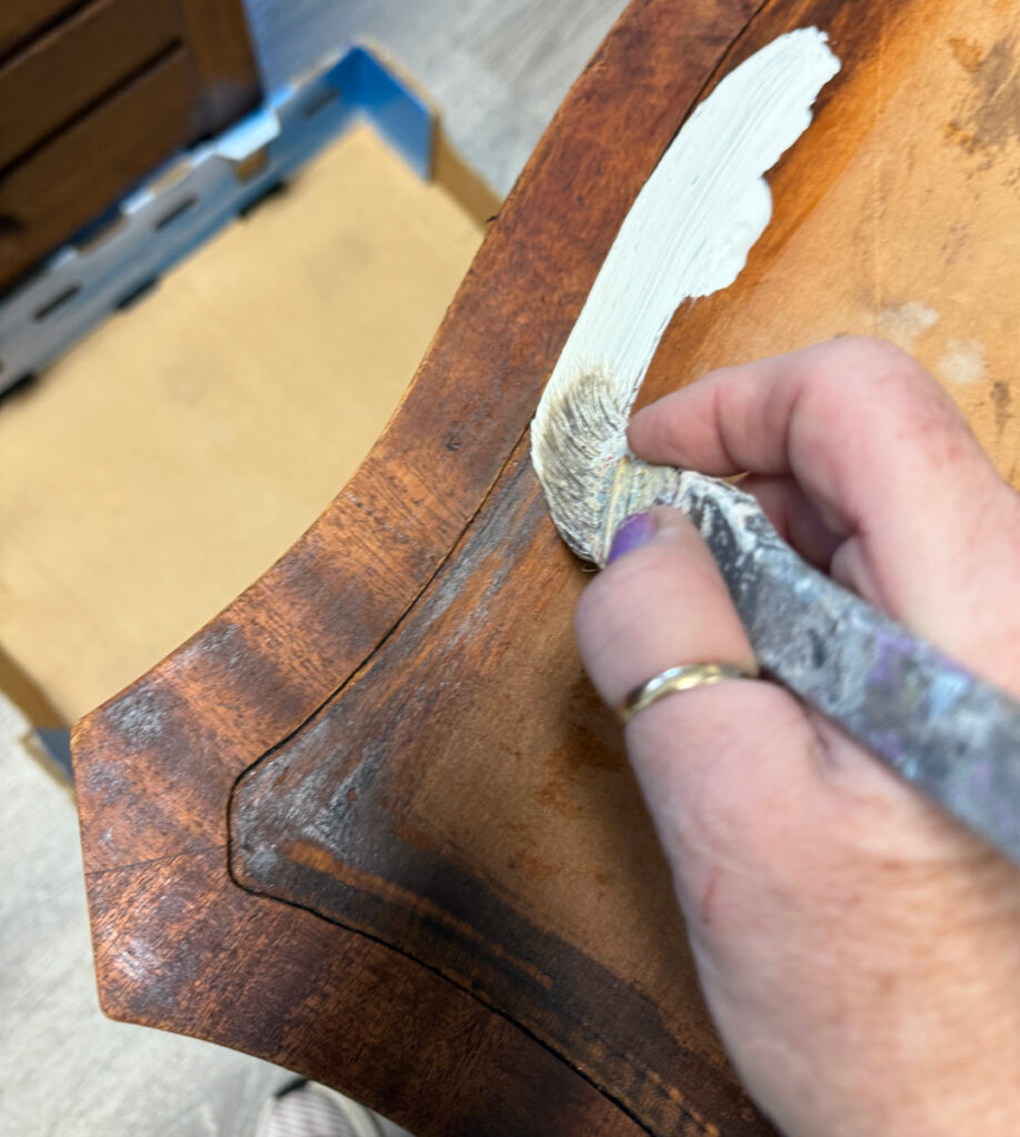 The big decision when working on old furniture pieces is always DO I RESTORE or DO I PAINT? So many people have so many opinions and I’m sure you’ve read the comments. When I had my store, it was easy. If someone brought me a piece of furniture and said “Paint it!”, I painted it. That was so easy. But when it was my piece, I found myself stuck. I finally realized that I was in the business to make money so if the piece was easy to restore, I would do that. If it was a piece that would take too much time and resources to restore, I would paint it. If it was a beautiful solid wood piece with little damage, I would restore. But as the number of these pieces dramatically diminishes and pieces are really damaged, I find my self wanting to restore which can take hours and hours of effort. You will never be compensated for that time because, let’s face it, folks want a good buy for a great price. So, I generally reserve the full restoration for sentimental pieces.