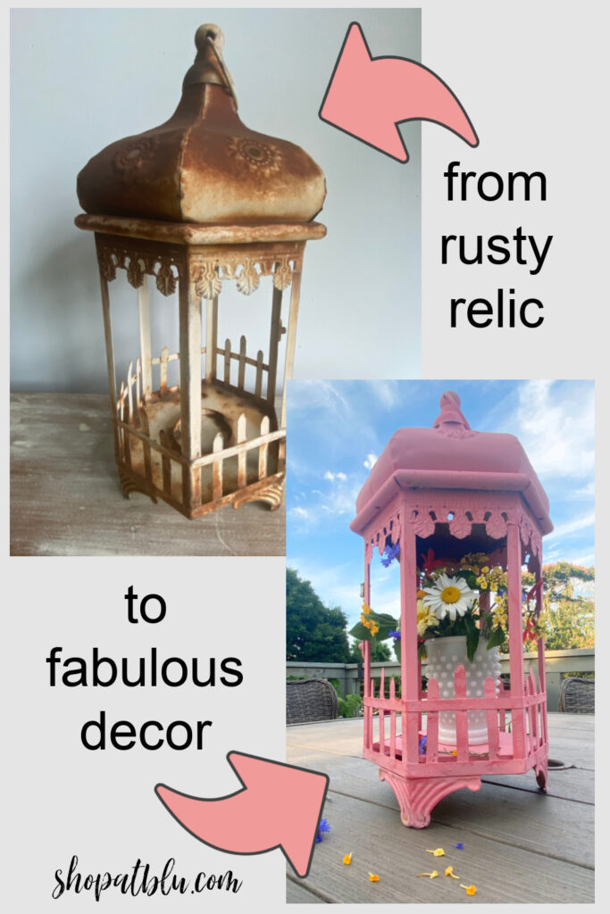 Have you stumbled upon a really great find with fabulous bones and detail? The price is right. But the finish is horrible. Like this metal garden decor lantern I found at the thrift store for $5.